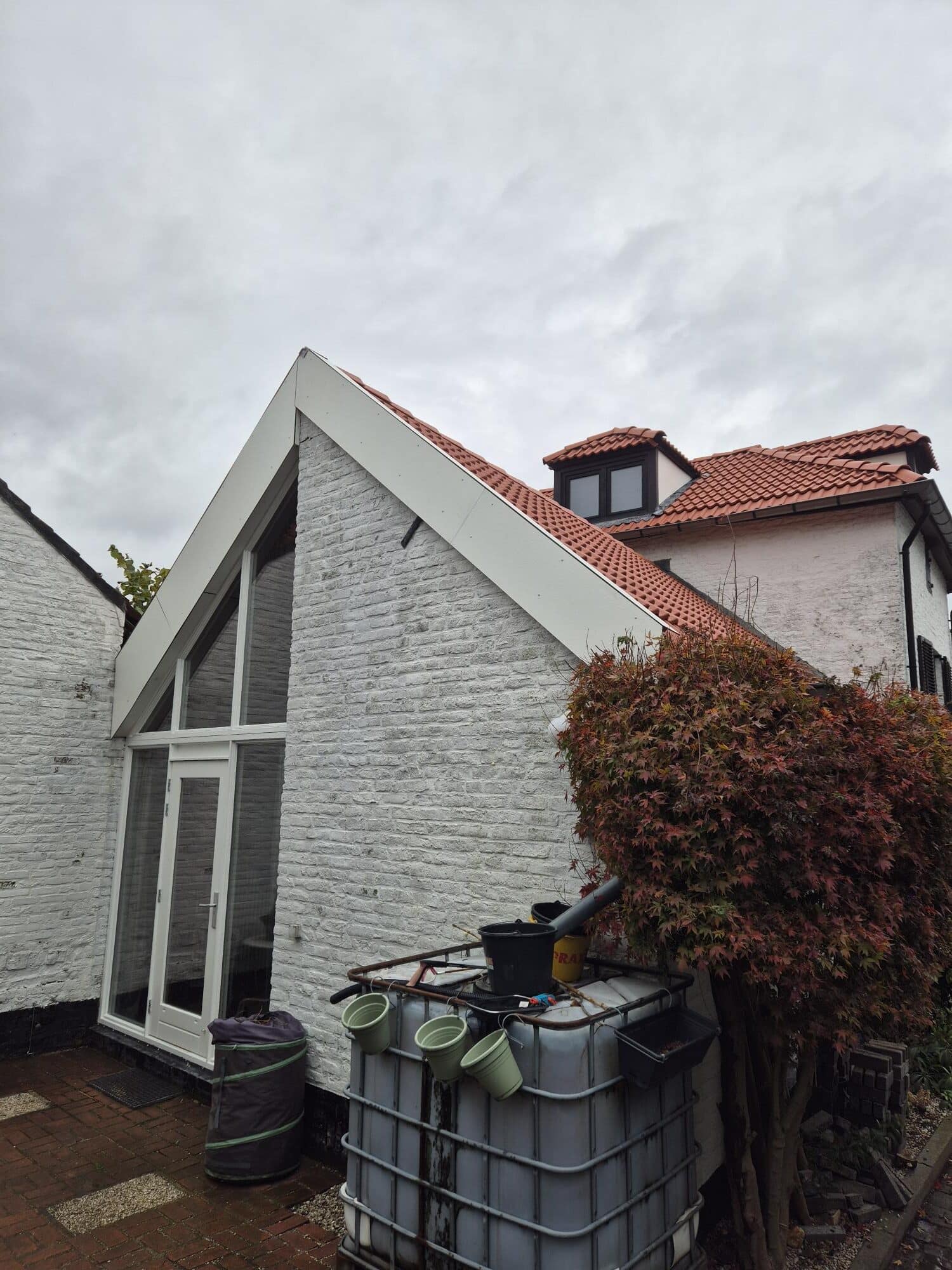 Tot slot is de dakrand afgewerkt met HPL-beplating en is een nieuwe dakgoot vakkundig gesoldeerd.