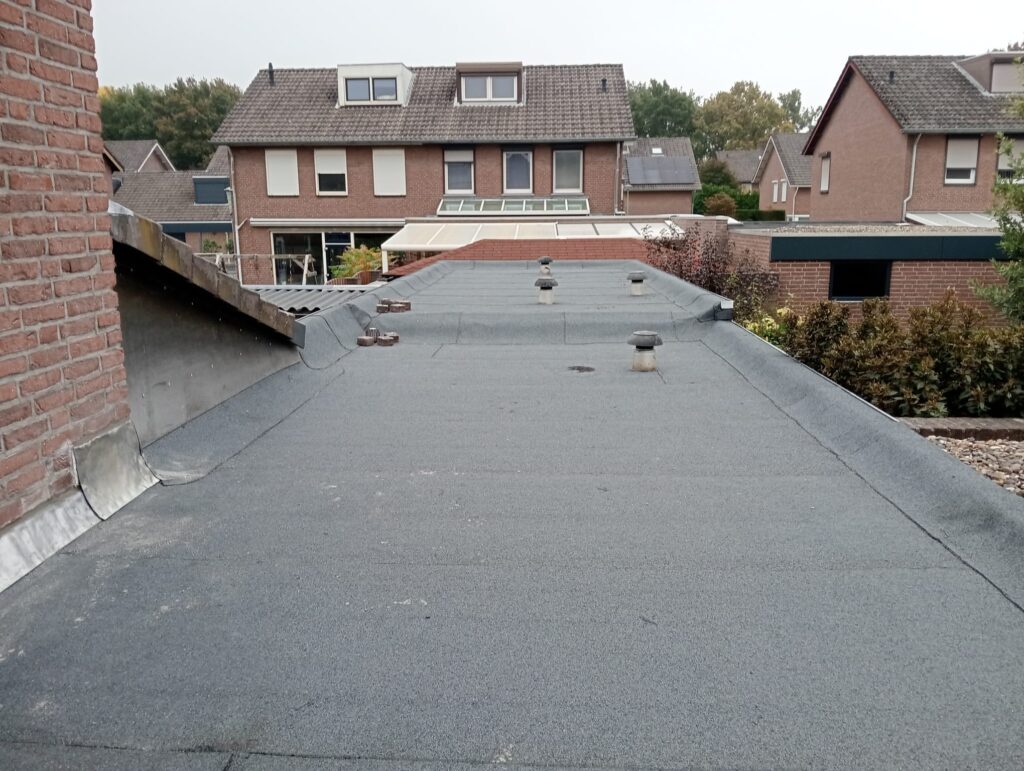 Bij dit project in Sittard trof DVG een plat dak aan waarvan de bestaande dakbedekking verouderd was, maar nog geschikt om als onderlaag te dienen. De uitdaging was om het dak te voorzien van een nieuwe, duurzame toplaag, inclusief het vervangen van alle hemelwaterafvoeren en het netjes afwerken van de dakranden.